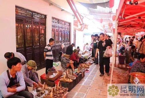 武定縣的野生菌市場(chǎng)設(shè)在古鎮(zhèn)中,進(jìn)入古鎮(zhèn),彝族風(fēng)格的建筑比比皆是。每天的下午2點(diǎn)到5點(diǎn)是市場(chǎng)最熱鬧的時(shí)候,這里有村民早上采摘的新鮮野生菌。