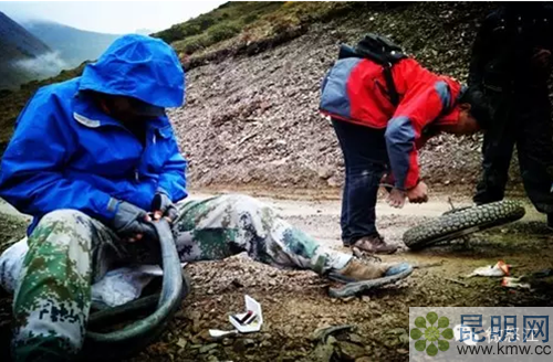 在察隅縣城偷學(xué)的補(bǔ)胎手藝,沒想到先用在當(dāng)?shù)夭孛竦哪ν熊嚿稀?/p>