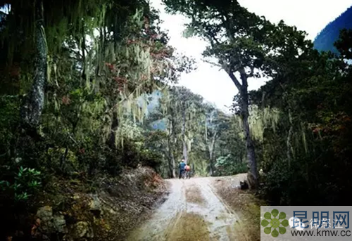 第二天早上離開河水清澈的米奇村,開始推車爬山,很快進(jìn)入原始森林, 松蘿密布,說明這里空氣質(zhì)量非常好。
