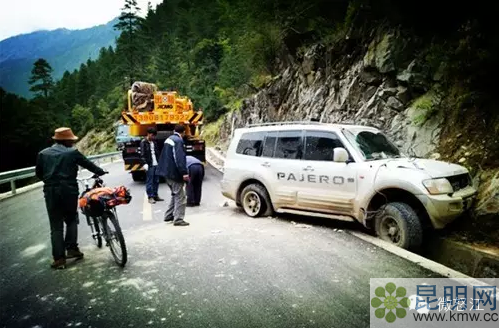 第一天早上八點(diǎn)半離開察隅縣城,踏上省道S201線,遇見從艱難的丙察察線過來(lái)的廣東車,沒想到。。。估計(jì)是右后輪爆胎,幸虧車內(nèi)人員只受點(diǎn)輕傷。