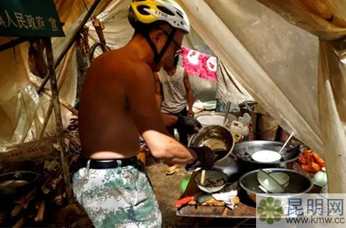 這是九天來(lái)第一次吃到米飯,雖然只有一個(gè)菜,還是工地上的剩飯, 仍然特別香。