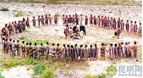 卡雀娃:獨龍牛常用來祭天?ㄈ竿薰澥仟汖堊宓拇汗潱荒昃瓦@么一個節日。每年的1月10日。“卡雀娃”節最重要的活動就是剽牛祭天。