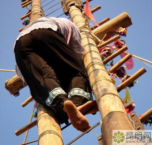 刀桿節:云南邊陲輪馬山一帶傈僳族人民一年一度的傳統節日。時間是農歷二月初八。每年的這一天,人們都穿上節日的盛裝,成群結隊地來到“刀桿節”會場,觀看“上刀山,下火海”活動 。