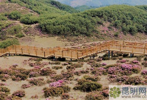 馬鹿塘杜鵑花海所屬地帶海拔3000-3100米,屬高寒山區(qū)。這里的山勢起伏不定,一個個大小不一、高矮不等的山丘,長滿了密密麻麻的杜鵑叢。叢叢杜鵑之間,有的致密無隙,難以行走;有的稀疏有徑,可過人畜。除了杜鵑樹外,山坡之上還長著各種野草,野草很矮,它們從不搶杜鵑的風(fēng)頭,花開之時,就在矮處默默地襯托著杜鵑的美麗。景區(qū)修建了棧道,方便游客近距離賞花。