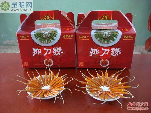 原產于石屏縣牛街鎮那刀村,金黃透亮,含油高,辣口不辣心,香辣濃郁,價格不一。縣城農貿市場有售。