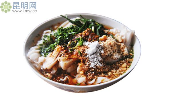迤薩卷粉,是用紅米和白米勾兌加工成米漿后,人工蒸煮而成,色澤白里透紅,形成了迤薩卷粉的獨特性。很講究佐料,其中油辣、香芝麻、姜、蒜等必不可少。