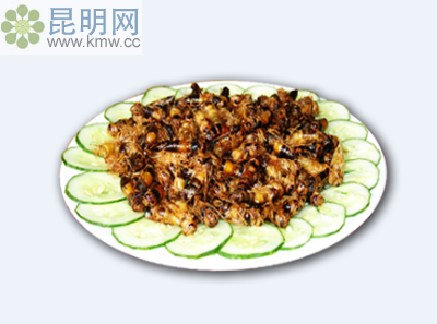 芒市少數民族好吃昆蟲宴,而蜂蛹則是不可或缺的上等美食。蜂蛹的吃法很簡單,將野生的蜂蛹及成年蜂用菜油進行煎炸,炸到變脆的時候起鍋,撒上鹽就可以食用。炸蜂蛹香味遠溢,幾百米外的人都可以聞到。