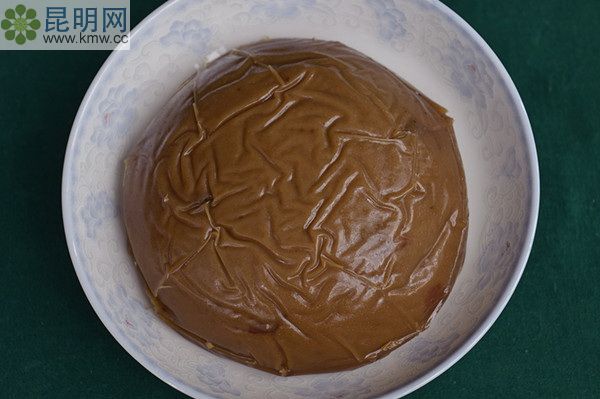 制作工藝精細,選料認真,以上等糯米為原料,把其水磨成漿后,摻入紅糖或白糖、芝麻、玫瑰、花生仁、火腿等物混合拌勻后,定量注入用整張鮮豆腐皮墊底的碗中,經(jīng)過攝氏150度高溫蒸熟、冷卻后經(jīng)涂油加印即可上市出售。具有表面光滑,晶瑩油潤,品質(zhì)細膩,味香清甜,柔韌適口,久食不膩等特點,至今有300多年的盛譽。