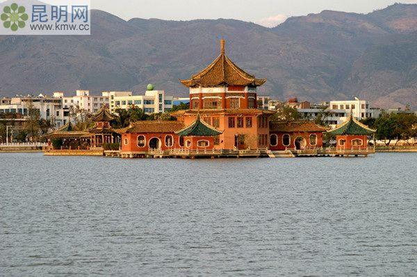 因坐落于舊城南門外而得名。原為一片沼澤地,明代將其開掘成湖。在湖中堆積成三座土山,以神話中的蓬 萊、方丈、瀛洲三仙山命名。從前,當(dāng)?shù)氐奈娜藢W(xué)士常喜歡到這里吟詩作賦,發(fā)奮苦讀,故又稱 “學(xué)海”。云南過橋米線的故事起源于這里。