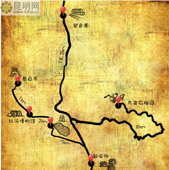 過橋米線的發(fā)源地,一望無際的萬畝石榴園,滇越鐵路最美的小鎮(zhèn)碧色寨,浪漫的法式風(fēng)情花園。