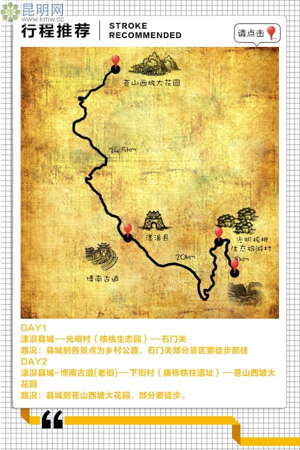 漾濞縣城-20km-光明村(核桃生態(tài)園)-8km-石門關(guān)