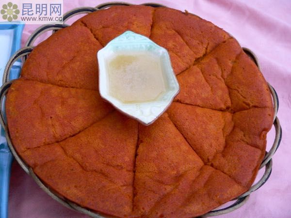 漾濞彝家人的傳統(tǒng)小吃,也是招待貴客的食品。第一道為“蜂蜜核桃茶”,第二道蜜為“蕎粑粑蘸蜂蜜”,第三道為“核桃蘸蜂蜜”。