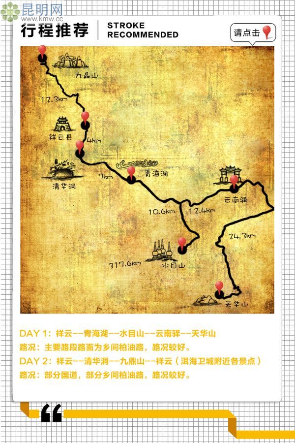 祥云-8km-青海湖-10km-水目山-12km-云南驛-16km-天華山