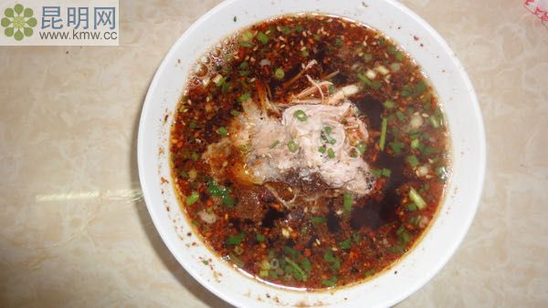 也叫長壽面,到巍山必吃。是用鹽水和優質面粉和成面團,再搓成小拇指般粗細面條并盤起,不斷拉細下鍋。煮熟后,加骨頭湯、當地特色面臊子、草果面、醬油、辣椒面等佐料,不但味美,而且還有吉祥之意。