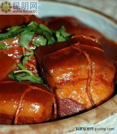 又叫繞腌肉,彝族語(yǔ)叫“喜扎”,是南澗縣紅星一帶彝家人的獨(dú)特肉食。“喜扎”只有在當(dāng)?shù)靥厥獾臍夂驐l件下才可腌制,在其他很多地方吃不到。回壇肉色澤鮮亮,酸中帶香。