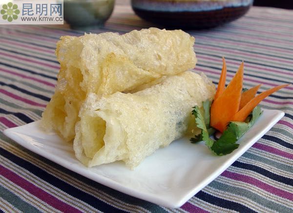 云南最正宗的乳扇,用牛奶做成,是大理白族最地道的美食之一,因酷似扇形而得名。乳扇為薄片,生的就可以直接吃,但常見的是油煎乳扇,蘸上白砂糖,既脆,又香,又甜。