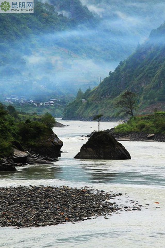 在從丙中洛起經一百多公里處的江面上有一塊浪沖不走,水磨不掉的礁石,礁石的頂端屹立著的就是江中松。據說,江忠松已有幾百年的歷史。春去秋來,樹冠的松葉落了又長,長了又落,從不見“光頭”的時候。江中松任憑風吹浪打,傲立礁石巋然不懂,令人嘆奇。