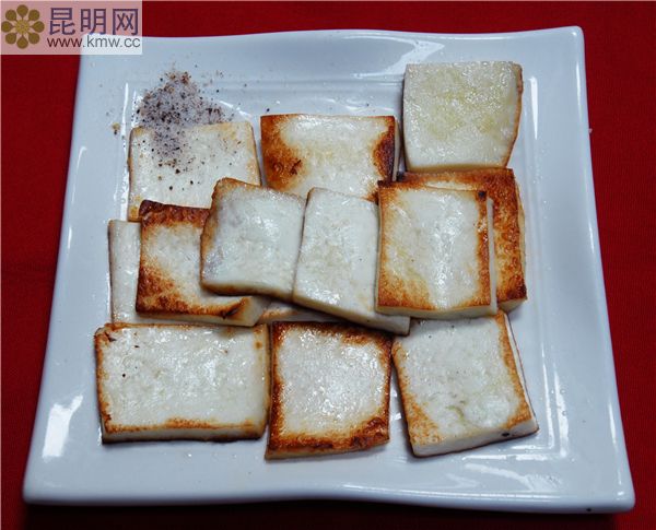 是石林一大特產,是當地人把新鮮的羊奶煮沸,再加入適量酸水,使其凝固,然后壓制成塊,晾干后即成乳餅(屬奶酪的一種)。乳餅的吃法很多,可蒸、煮、煎、炸、燴,亦可生吃,還可以做成火腿夾清蒸乳餅,青豆燴乳餅等菜肴,冬季生產的乳餅品質較好。