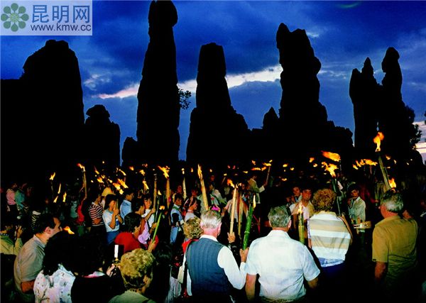 每到農歷六月二十四,在石林、長湖或乃古石林等景區都會舉行一年一度的火把節。這時如果你來到石林,就可以在觀看了精彩的斗牛,摔跤比賽后,在場外不遠的樹林里大吃一頓極富地方民族特色的湯鍋,這里的湯鍋烹飪技術極好,各種肉燉得恰到好處,不硬不軟;無膻味、腥味等怪異味,色、香、味俱全,使人食后回味無窮。