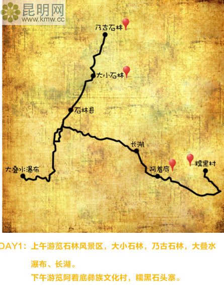 昆明至石林為昆石高速,全程高速直達景區,89公里,自駕1小時10分鐘左右可達。
