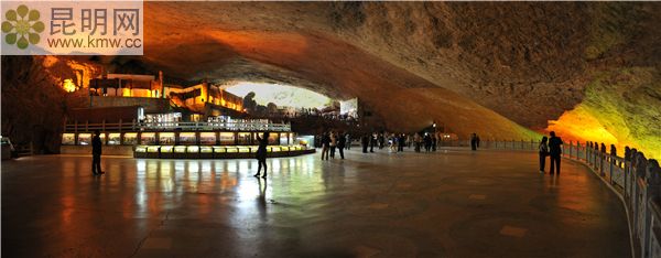 是一個穹頂傾斜的橢圓形地下廳堂,因南洞口鐘乳凝石堆壘如雄獅而得名。整個洞頂由一塊巨大完整的巖石構成,天衣無縫,中點沒有任何支撐,在全國已開放洞穴中堪稱第一地下大廳。