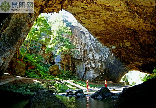 洞中雙飛瀑高達30米,洪水季節兩瀑合二為一,如一條巨型黃龍,從懸崖上訇然而下,難分雌雄。