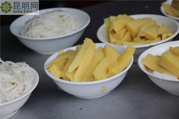是安寧人都知道,八街的涼卷粉,那叫個牛。就在街上擺個小攤子,一天到晚生意興隆,主要在八街鎮主街道上,農貿市場外有兩家,都好吃,味道差不多,有酸辣味和酸甜味的,只要從那里過路的本地人都會開車進去來一碗。