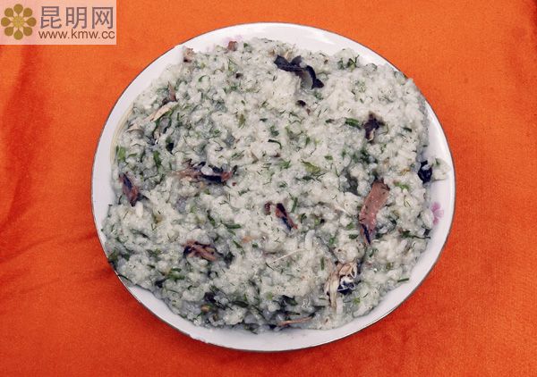 佤族人稱“每最”。稀飯就蘸水,略帶刺激又清香可口。