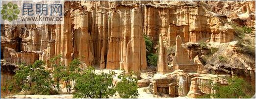 又名新華土林,位于元謀縣城西33公里處新華鄉(xiāng)境內(nèi),距班果土林15公里,地處元謀、大姚、牟定3縣交界處,海拔1560—1640米,面積1.4平方公里,它是流水侵蝕的一種特殊地貌形態(tài),是特殊的巖性組合,是在構(gòu)造運(yùn)動、氣候、新構(gòu)造運(yùn)動頻繁、地殼抬升速率快、流水侵蝕力強(qiáng)等綜合因素相互影響下形成的。發(fā)育于湖相沉積的粉細(xì)沙層、粘土層夾少量的細(xì)礫石層中。