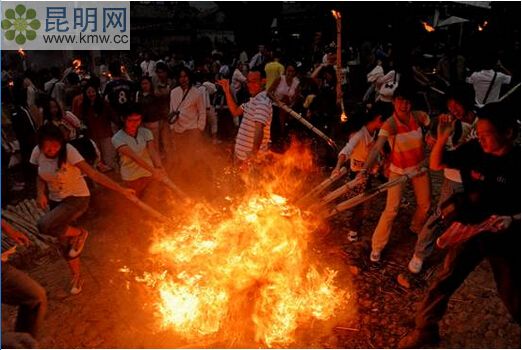 農(nóng)歷六月二十四日,彝族都要過火把節(jié),火把節(jié)又叫星回節(jié),俗有“星回于天而除夕”之說,相當(dāng)于彝歷的新年。火把節(jié)的主要活動在夜晚,人們或點(diǎn)燃火把照天祈年,除穢求吉,或燒起篝火,興行盛大的歌舞娛樂活動。火把節(jié)期間,還要舉行傳統(tǒng)的摔跤、斗牛、賽馬等活動。