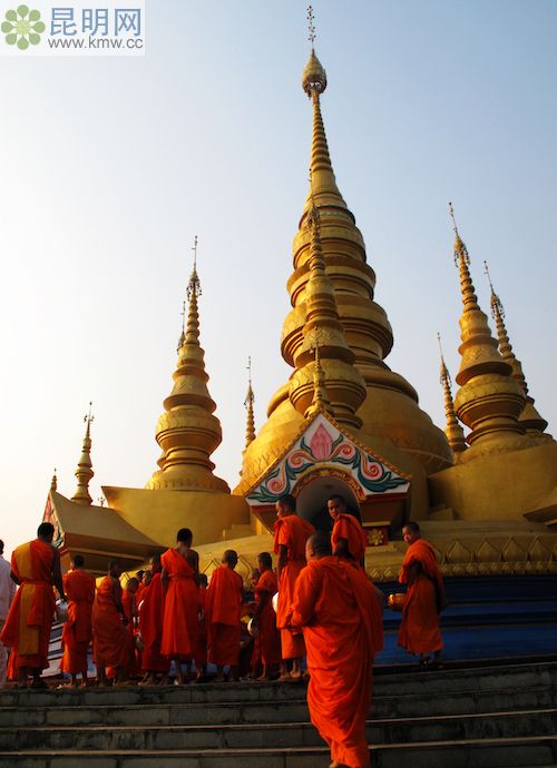 從孟連宣撫司署出來,附近有中城佛寺,可以觀賞民族風格的佛寺建筑和大致了解傣族的佛教信仰,門票2元。在鎮上用過午餐后,游覽與孟連宣撫司署門堂遙遙相對的孟連大金塔,大金塔由8個小塔環抱一個主塔構成,金光燦爛,頗為漂亮。至此結束愉快行程,即可以乘車返回思茅,也可以繼續留住在娜允古鎮上,進一步體驗傣家生活。