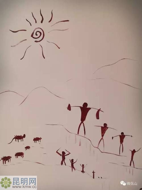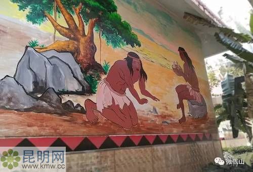 壁畫內(nèi)容豐富,畫上有古時佤族先民的生活、祭祀、村寨等圖案,還有現(xiàn)代佤族人民的耕種、戀愛、制作木鼓等,畫面生動,色彩艷麗。