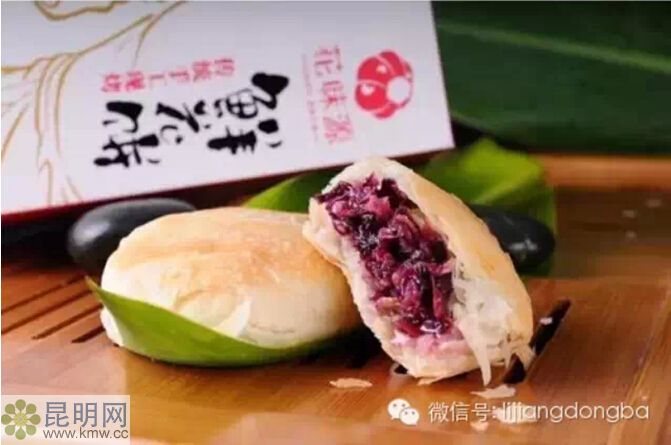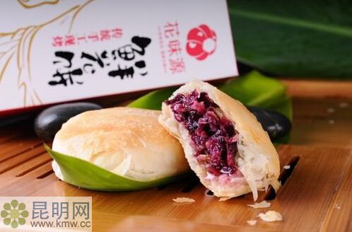 鮮花餅是一款以云南特有的食用玫瑰花入料的酥餅,是最具有云南特色的經典點心代表。口感極好,香甜不膩,口中余留著淡淡玫瑰味。凡是來到昆明的游客,臨走時都會捎上一些鮮花餅回去。