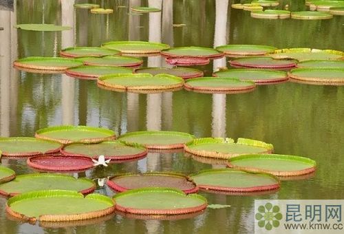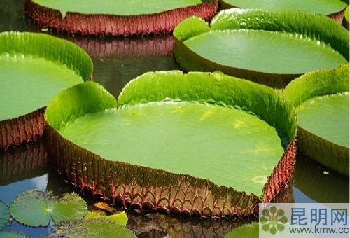 王蓮也被稱為“女王的王蓮”,1837年,英國植物學(xué)家和園藝家約翰·林德利公開發(fā)布新屬王蓮屬,為表達(dá)對當(dāng)時(shí)維多利亞女王崇敬之情,將其定名為王蓮。碩大的王蓮可承受近70公斤重量,如同乘著一葉扁舟,就憑力大無窮的本領(lǐng),“蓮中之王”美譽(yù)也當(dāng)之無愧。王蓮擁有水生植物中最大的葉片,葉展直徑最大可達(dá)3米,葉片邊緣向上卷曲,猶如翠綠的玉盤,又形似小船。王蓮背面呈土紅色,密布著中空而堅(jiān)實(shí)的粗壯葉脈,構(gòu)成堅(jiān)固的“骨架”,葉子里面有許多充滿氣體的洼窩,使葉子有很大的浮力,因此不僅能載物,更能載人,兒童可以輕易坐上去,絲毫不會搖晃。