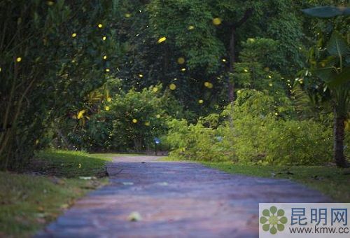 除了蓮花,盛夏的西雙版納植物園,讓人們魂?duì)繅粝祼鄄会屖值倪有那一串串閃爍靈動的螢火,成群結(jié)對,宛若星河。它們?nèi)缫恢恢恍⌒〉木`,裝飾著小朋友們的童年,成人的夢境。
