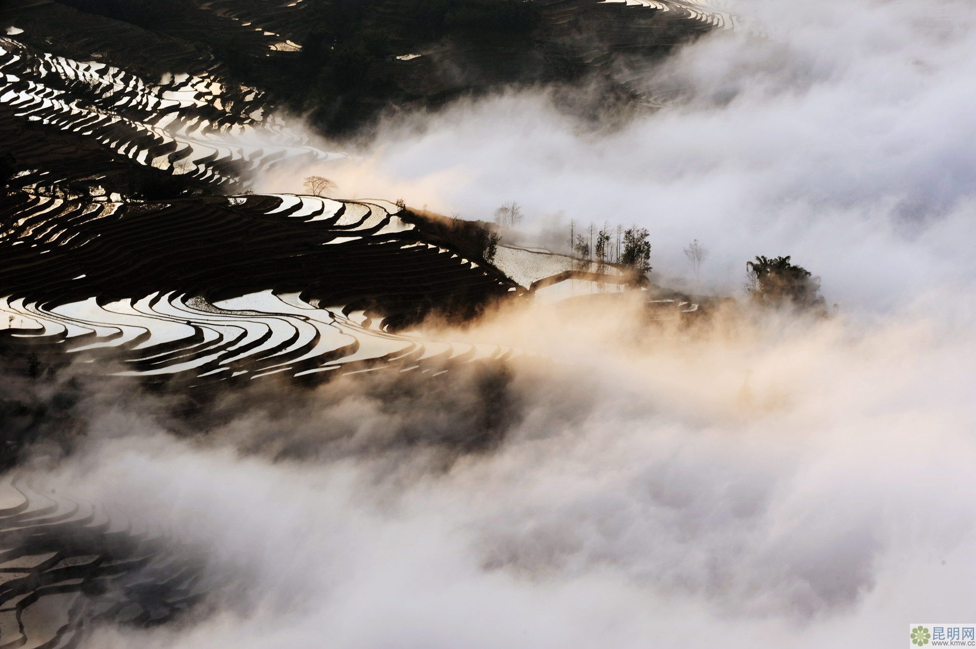 紅河的云海梯田每年11月到次年3月比較適合拍攝。元江梯田主要集中在那諾和羊街兩個(gè)鄉(xiāng),每年的十一月至次年的三月,紅河河谷的低海拔熱潮抬升與哀牢山的冷空氣交融,形成厚重的云霧,云霧隨風(fēng)翻涌,變幻莫測(cè),與梯田共同構(gòu)成一幅千里云海梯田畫(huà)廊。那諾吃,住都很方便,住家房頂即可觀云海梯田景色。