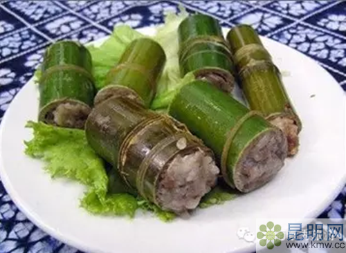 7、香竹飯:香竹飯具有濃郁的傣族風(fēng)味,每年11月至次年2月間做出的飯最好,此時(shí)竹子內(nèi)有一層香氣撲鼻的香膜,所以叫香竹。傣族人將香竹的竹節(jié)作底砍下,將泡過的糯米放進(jìn)竹筒,用芭蕉葉塞住竹筒口,用水浸泡15分鐘,放進(jìn)火灰里焐著或在炭火上烤,待竹筒口冒出蒸汽達(dá)10多分鐘后,再取出來,吃的時(shí)候用木錘敲打,飯變得又軟又香,吃起來芳香柔糯,別有風(fēng)味。