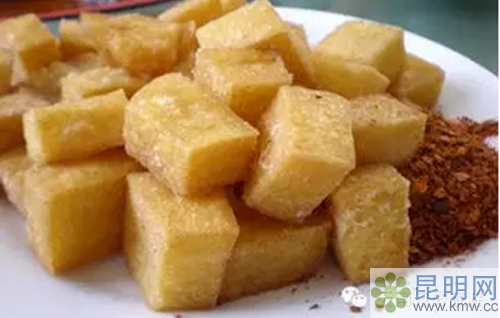 8、油炸豌豆粉:油炸豌豆粉是傳統(tǒng)民間小吃,先將質(zhì)量上乘的豌豆用水泡漲去殼,然后磨成漿,用篩子過濾,再把漿水放入鍋里用文火慢慢煮成糨糊狀冷卻后即成豌豆粉。用刀將豌豆粉切成小片,放入鍋內(nèi)用清香油和熟豬油混合炸,半熟后撈起來晾一晾,再重入鍋內(nèi)油炸待熟透后撈起。吃時(shí)灑上椒鹽,吃起來香脆、鮮嫩,令人回味無窮。