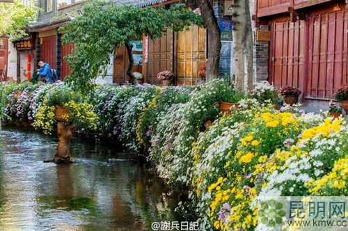 麗江種菊歷史悠久,古城金秋菊花展從10月開始,幾萬盆菊花將麗江古城裝點成菊的世界,花的海洋;數(shù)千種菊花爭妍斗艷,這一切仿佛都是畫師筆下一幅龐大的巨作。我喜歡它的顏色,溫暖,親切。我們只需要準備好手機相機咔 咔 咔。