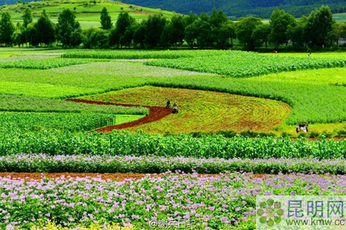 太安的洋芋花分別是:白色、粉色、紫色,3個不同的色彩,一朵朵的小花,就像一個情竇初開的少女,羞澀惹人愛。哈哈,雖然你吃過土豆,但是你有見過如此大片三色彩的花海嗎?一行人漫步在色彩斑斕的三色世界,走在花間小道,隨處可見的游客,在田間嬉戲拍照,輕輕撫摸花枝,俯下身細聞洋芋花粉的獨特味道,香氣撲鼻。站在小山峰俯瞰整個的洋芋花海,藍天白云的天,和五顏六色的花海。花和天空,兩種鮮明的顏色,搭配在一起,讓眼前的景變成了一張美麗的明信片。