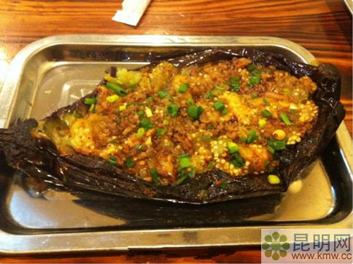 在蔓耗鎮的挖弟小吃,有一道別有風味的茄子——“龍船”。