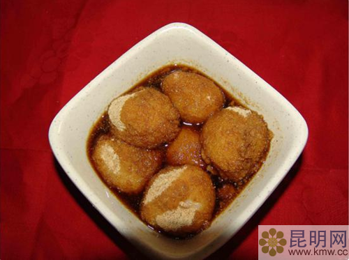沙甸區東郊燒烤店做的吊漿湯圓早已是眾人皆知。正是作為“滇菜廚藝傳承人”的李婭——東郊燒烤店的老板,用24小時的時間做成了這名副其實的湯圓:晚上6點左右,李婭把糯米洗凈后浸泡在水中,12個小時后,把浸泡過的糯米磨成米漿,然后用布口袋高高地吊起來,讓水分從布口袋中流走,再經過12小時(次日晚上6點),布口袋里的糯米就可以用來做湯圓了。