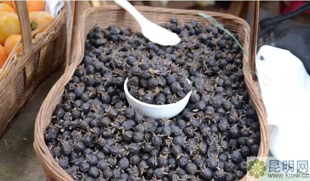 這黑乎乎的小果子是藍(lán)莓嗎?NO、NO、NO。它叫踏枝。是野柿花干。味道不錯,有柿餅的味道,但又比柿餅更軟更甜。