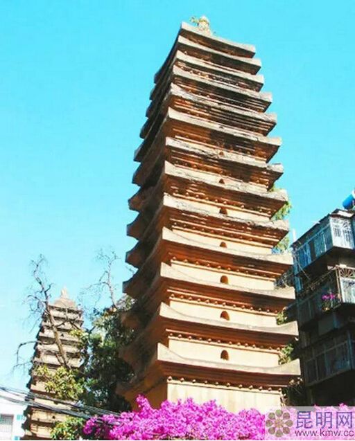 “城南雙塔高嵯峨,城北千山如涌波。”這是明初史謹(jǐn)描寫昆明景色的兩句詩(shī)。這“城高雙塔”,即指昆明的東寺塔和西寺塔。西寺塔今在東寺街南段西側(cè)的部隊(duì)營(yíng)房中,塔旁原有慧光寺,俗稱西寺,早毀。