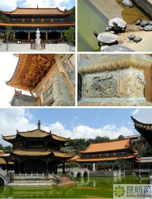 圓通寺以造園手法建寺,青山、碧水、彩魚、白橋、紅亭、朱殿、彩廊交相輝映,景色如畫,是全國(guó)重點(diǎn)佛教寺廟之一。寺宇坐北朝南,富麗堂皇,整個(gè)寺院以圓通寶殿為中心,前有一池,兩側(cè)設(shè)抄手回廊繞池接通對(duì)廳,形成水榭式神殿和池塘院落的獨(dú)特風(fēng)格。殿內(nèi)供奉有清光緒年間精塑三世佛坐像,大殿正中兩根高達(dá)10余米的立柱上,各塑有一條彩龍,四壁還塑有五百羅漢像,均堪稱中國(guó)佛寺中的上乘之作。大觀樓長(zhǎng)聯(lián)的作者孫髯翁,晚年曾在此地德咒蛟臺(tái)算懸掛為生。