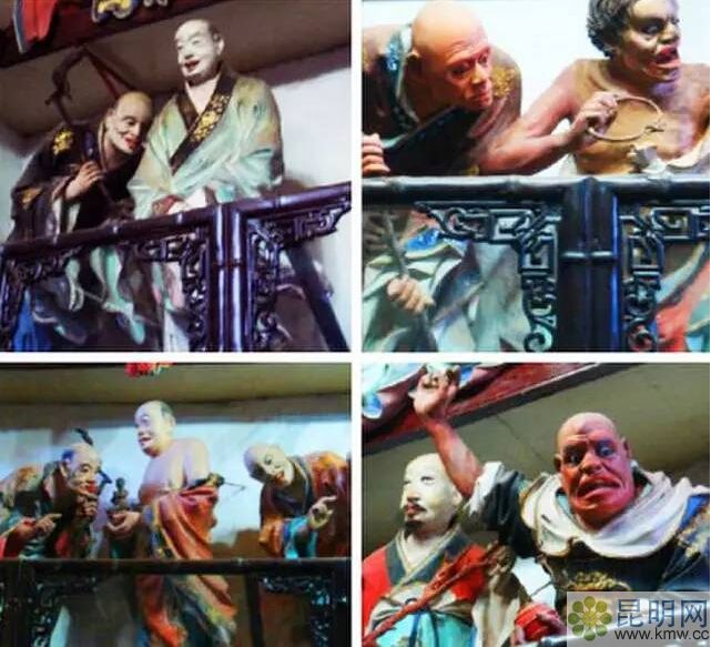 應(yīng)該說(shuō),筇竹寺最具魅力的,當(dāng)數(shù)由清代四川民間泥塑大師黎廣修師徒5人歷經(jīng)7年塑起的500羅漢。這些羅漢被塑造的生動(dòng)樸實(shí),神情各異,令人拍案叫絕。這一組羅漢塑像被稱為“東方雕塑藝術(shù)寶庫(kù)中的一顆明珠”。