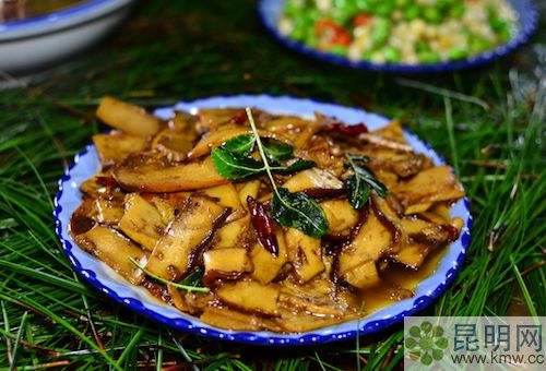 宣威火腿、沾益辣子雞、蒸餌絲、炸洋芋(土豆)。