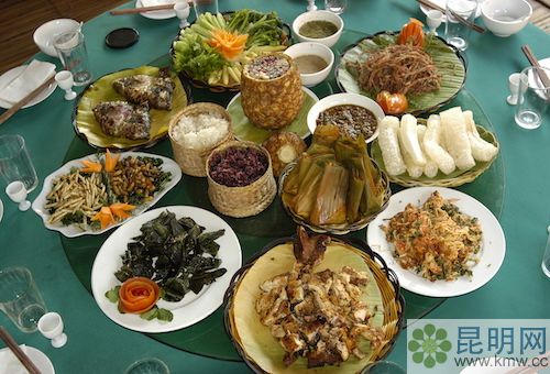 三七燉雞等三七系列菜肴、酸湯雞、酸湯牛肉、野生菌、燒餌塊、花糯飯。