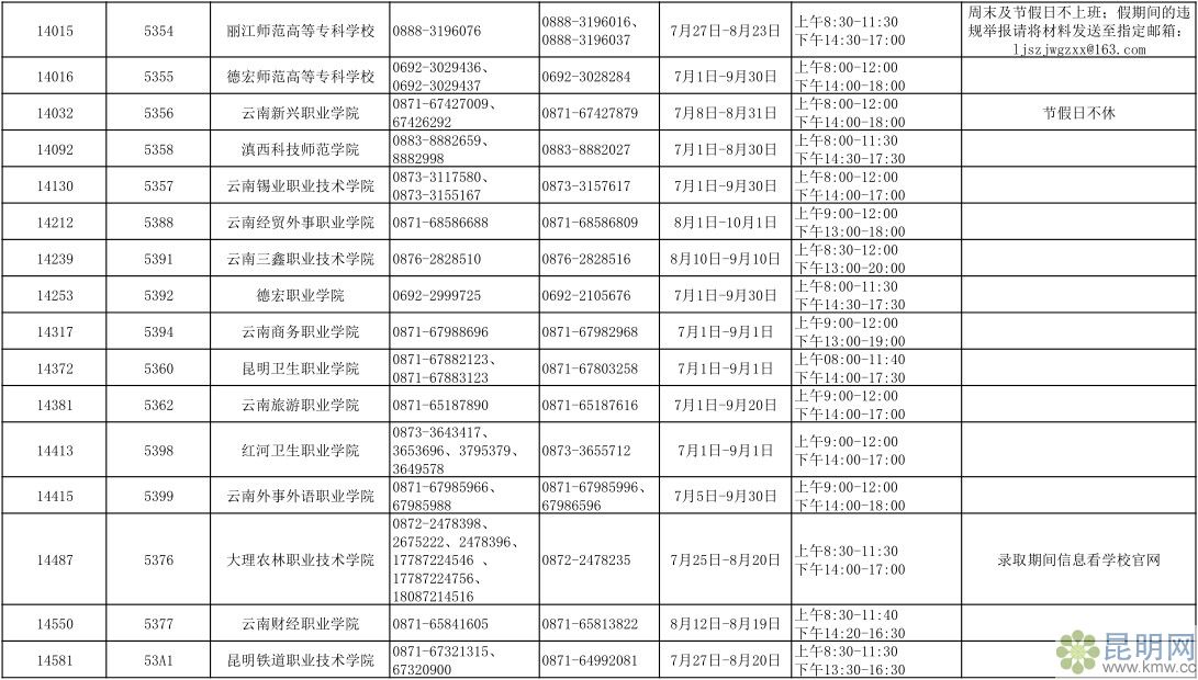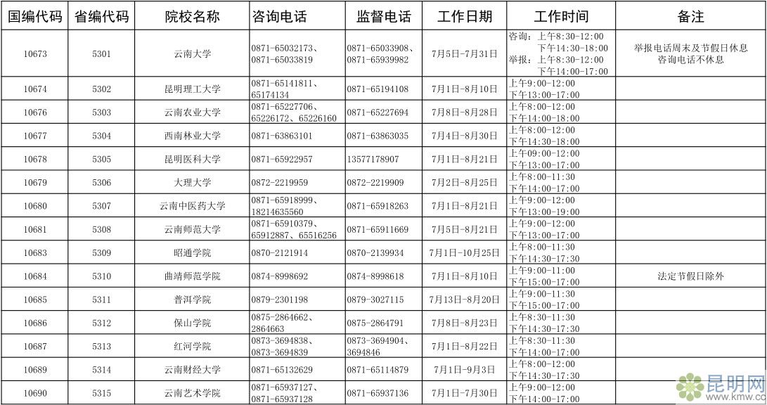 云南省2019年普通高校招生錄取期間咨詢及違規舉報聯系方式