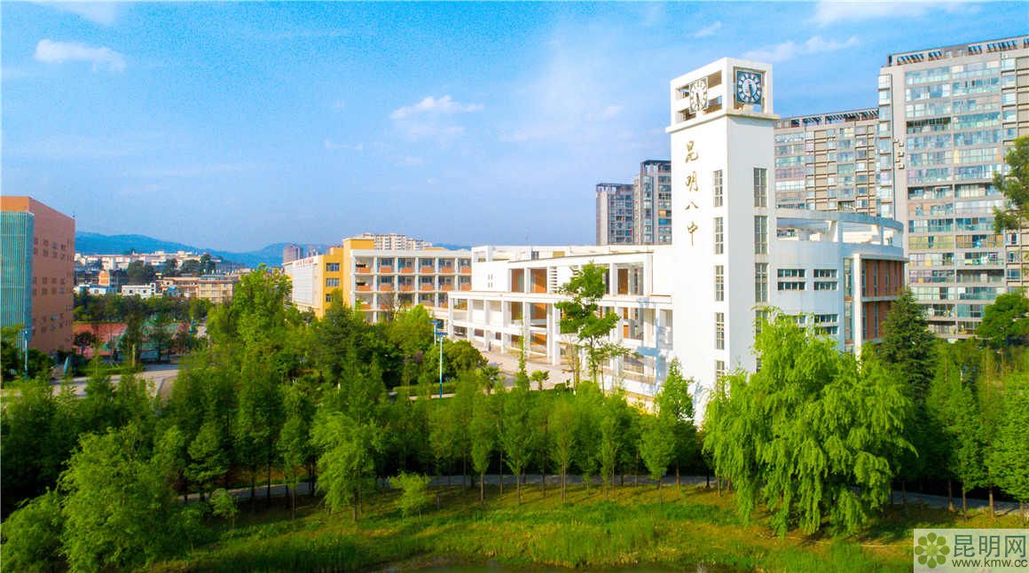 昆明市第八中學成立于1952年,1959年被評為昆明市“ 紅旗學校”, 1978年被首批確定為云南省重點中學,1993年被首批評定為“云南省一級完全中學”,2012年晉升為“云南省一級一等高(完)中”,2013年入選云南省首批普通高中特色化發展實驗學校。
